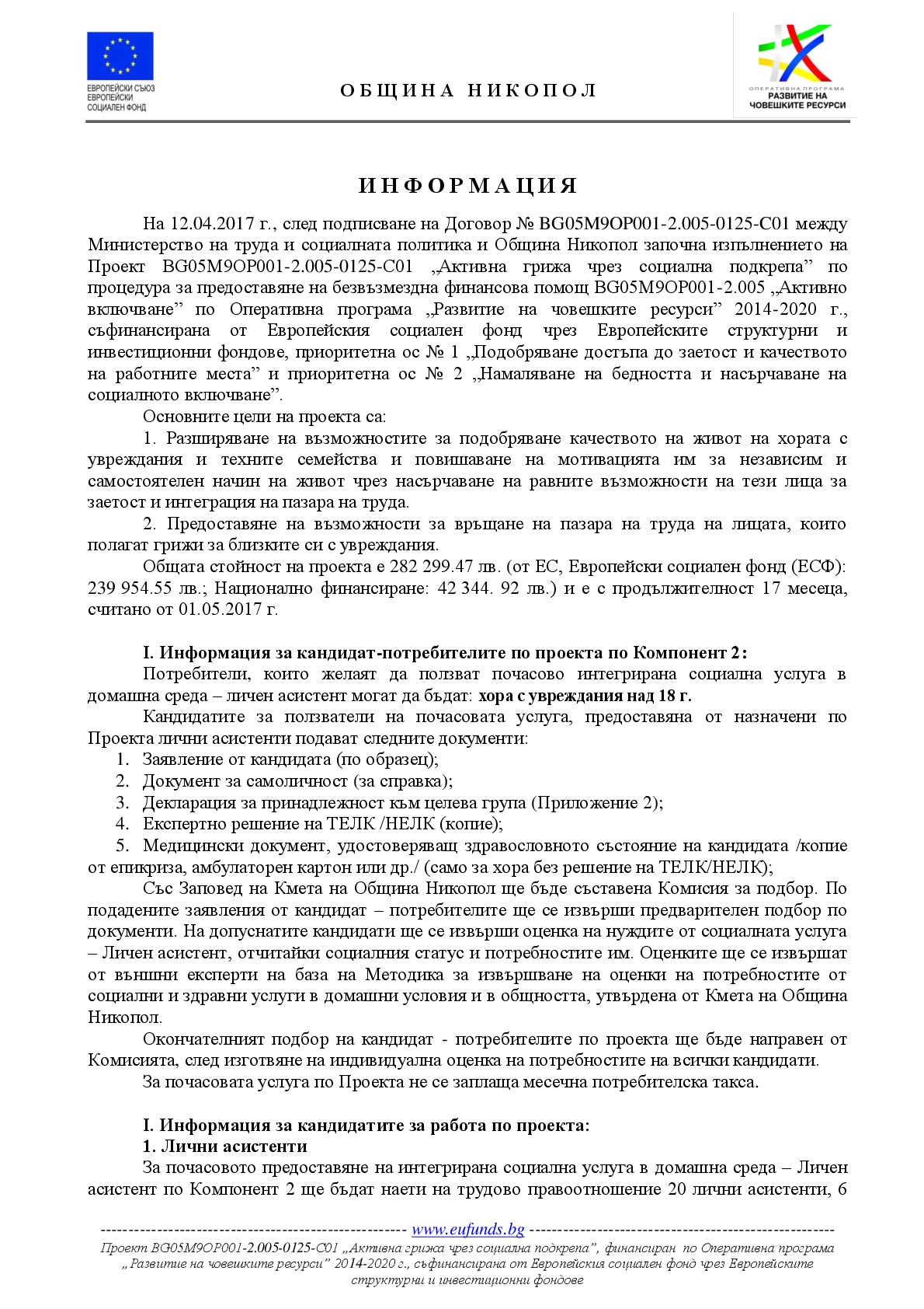 BG05M9OP001-2.005-0125-C01 „Активна грижа чрез социална подкрепа”